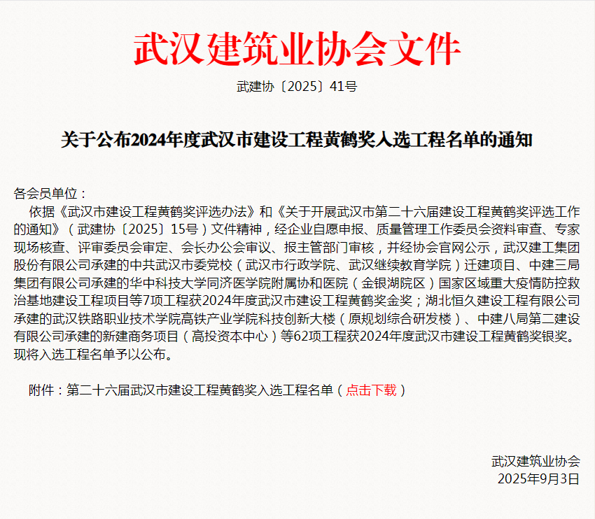 - 2025-09-10再添8項!湖北省建工第五建設(shè)有限公司榮譽(yù)持續(xù)刷新[圖]